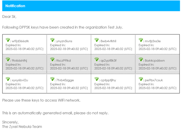 8 The 12 DPPSK keys will be sent to the specified email for your distribution.