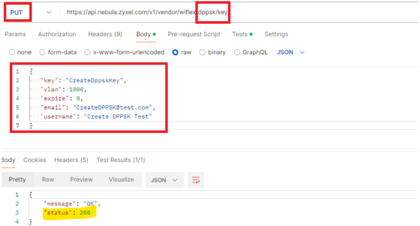 PUT | /dppsk/key | Create/modify a PPSK | { "status": 200, "message:": "Ok" } |