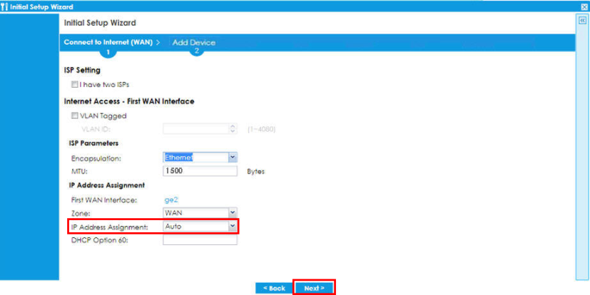 3 Configure the WAN settings and click Next.