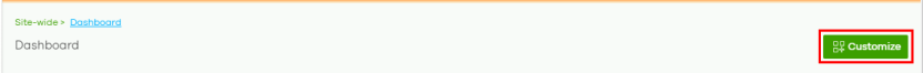 1 To filter the list of widgets to display on the Dashboard screen, go to Site-wide > Dashboard and click Customize to show the Widget, Reset and Close buttons.