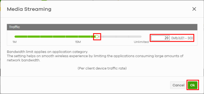 5 On the Media Streaming screen that appears, set the maximum bandwidth by: