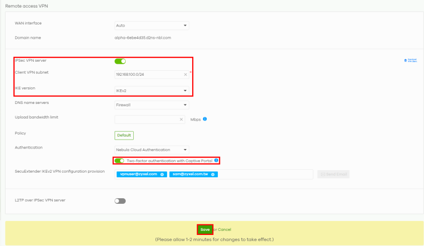 To set up a remote access VPN on Nebula, do the following: