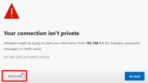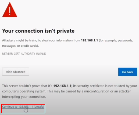 4 Click the Continue to xxx.xxx.x.x (unsafe) link on the bottom of the screen.