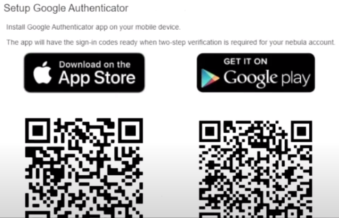 The prompt to download and install the Google Authenticator app on a mobile device appears. Install the Google Authenticator app. Then click Next.
