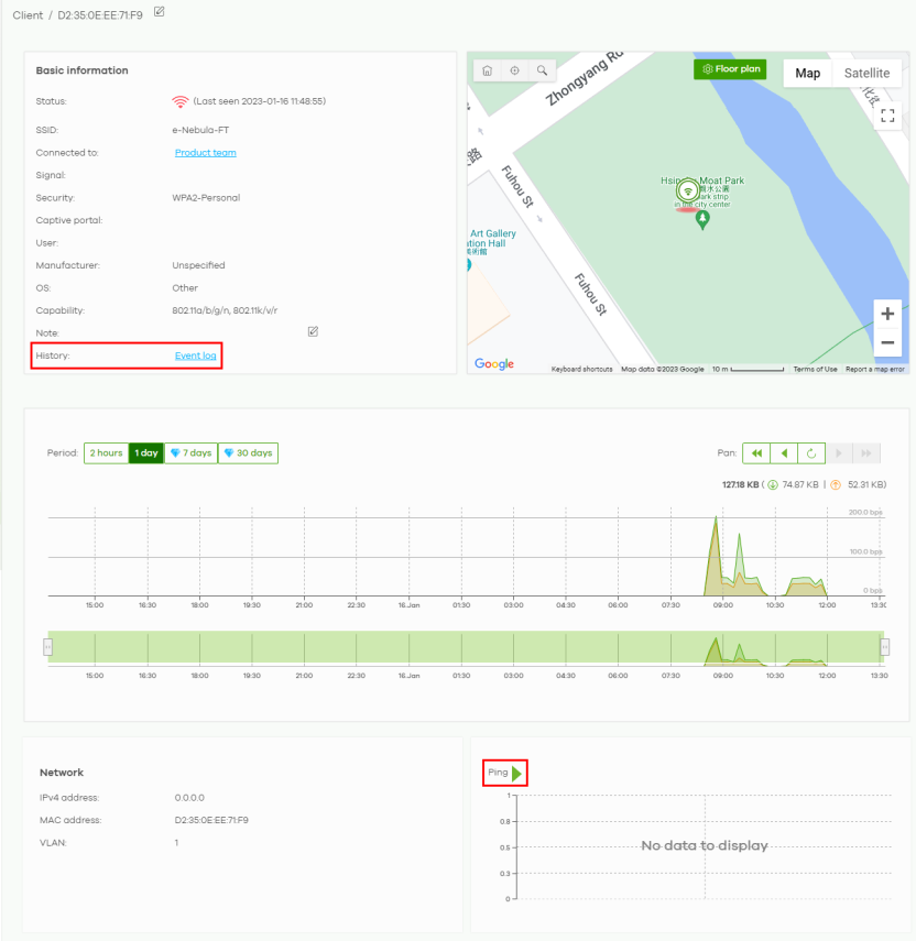 4 Click Ping to ping the client’s IP address from the Nebula AP to test connectivity.