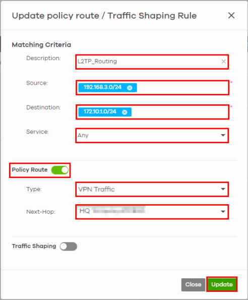 Route L2TP VPN Traffic