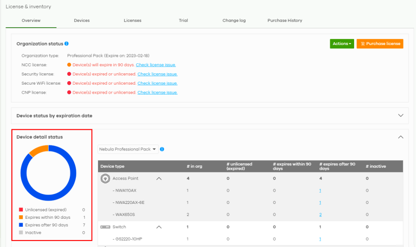 • Orange – Nebula Device with license that will expire in 90 days.