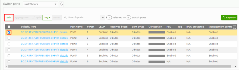 2 Select the port that connects to a VoIP device and click Edit.