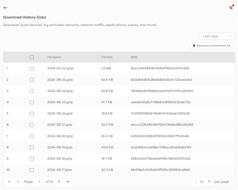 User | Depending on the data protection policy (see Add a Zyxel Device to an Organization for details), the following will be displayed: • For Partially Anonymous users, the user name is displayed but log search is disabled. • For Fully Anonymous users, copy a Hash value to search for logs. For example, USER-698a9b31-cea4-523c-8955-ffad47db967e. • For Non-Anonymous users, enter plain text (unlimited number of characters, case sensitive) for log search. |