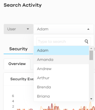 For a User, click Search > Activity > User > Security > Overview to display the following figure.