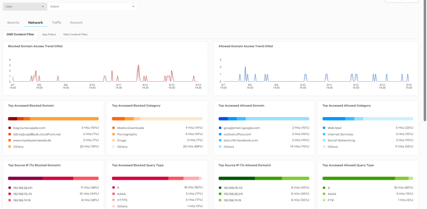 For a User, click Search > Activity > User > Network > DNS Content Filter to display the following figure.