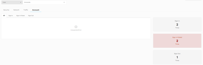For a User, click Search > Activity > User > Account to display the following figure.