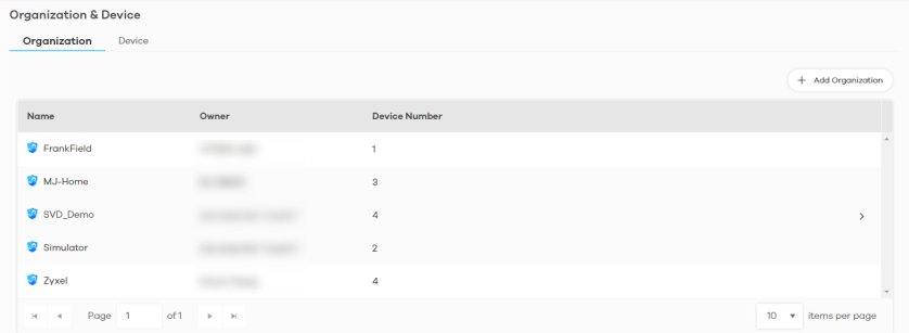 Organization & Device, you see all organizations that you have already created. You do not see organizations other people created.