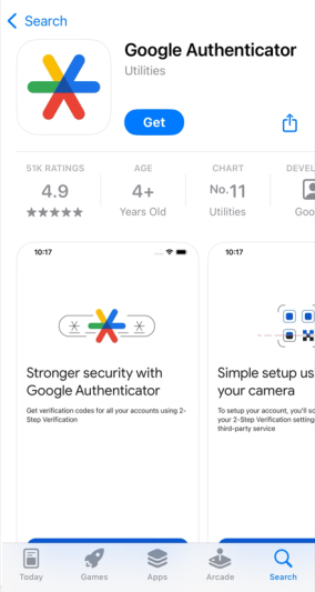 Set up Google Authenticator | If you chose Google Authenticator for offline two-factor authentication, on your mobile device, go to an app store to download Google Authenticator. To add your account to Google Authenticator, press the plus (+) icon, select Scan Barcode, then use your mobile device's camera to scan the barcode. Finally enter the verification code you receive on your mobile device in Verify your device. |