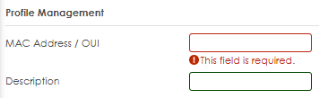 MAC Address /OUI | Enter a valid MAC address or OUI (Organizationally Unique Identifier) of the device that this user will use for authentication. This is used in conjunction with login credentials. ![]() |