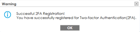 Save | This button is only available when adding a new user. Click Save to save your changes back to the Zyxel Device and then go to the Two-factor Authentication screen. |