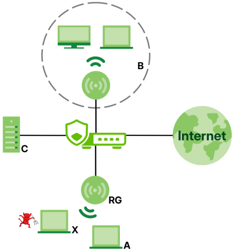 2.4 GHz / 5 GHz / 6 GHz | This displays the number of WiFi clients currently using the WiFi network on the corresponding band. • An empty field indicates that the band on the WiFi network (SSID) is not open. • A 0 indicates that the band on the WiFi network (SSID) is open, but no WiFi clients are connected. • A number with a hyperlink indicates the number of WiFi clients currently connected to the WiFi network (SSID) on the band. Click the number to go to the Wireless > WLAN Clients > All Clients screen, with the corresponding AP group automatically pre-selected. |