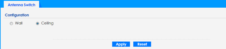 Select Wall if you mount the Zyxel Device to a wall. Select Ceiling if the Zyxel Device is mounted on a ceiling. You can switch from Wall to Ceiling if there are still wireless dead zones, and vice versa.