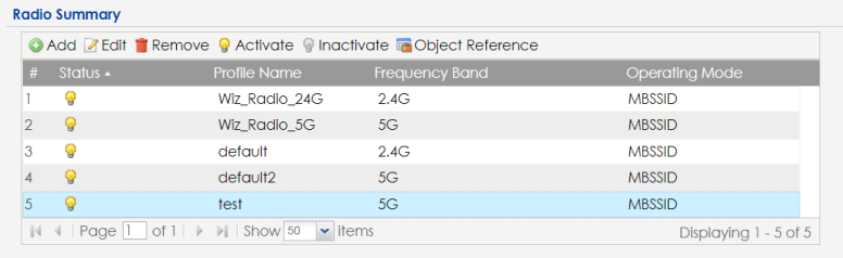AP Profile | Radio | Create and manage WiFi radio settings files that can be associated with different APs. |