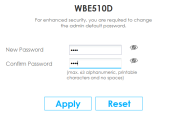 7 Set up a new password containing 4 to 63 printable characters. Spaces are not allowed. Click Apply.