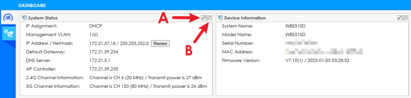 This screen displays general AP information in widgets that you can rearrange to suit your needs. You can also edit and refresh individual widgets.