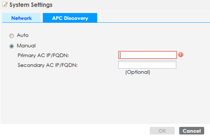 Primary AC IP/FQDN | Specify the primary IP address of the APC to which the Zyxel Device connects. |