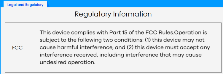 Legal and Regulatory) allows you to view the legal and regulatory information.
