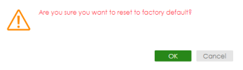 2 A pop-up window asks you to confirm that you want to reset the Zyxel Device to factory default. Click OK to proceed with reset. A count down starts.