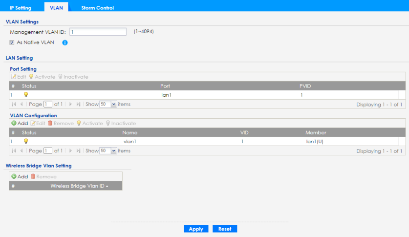 *Mis-configuring the management VLAN settings on your Zyxel Device can make it inaccessible. If this happens, you will have to reset the Zyxel Device.