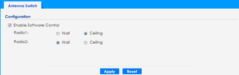 If the Zyxel Device has a physical antenna switch, select the Enable Software Control option to use the Web Configurator to adjust coverage depending on each radio’s antenna orientation for better coverage.