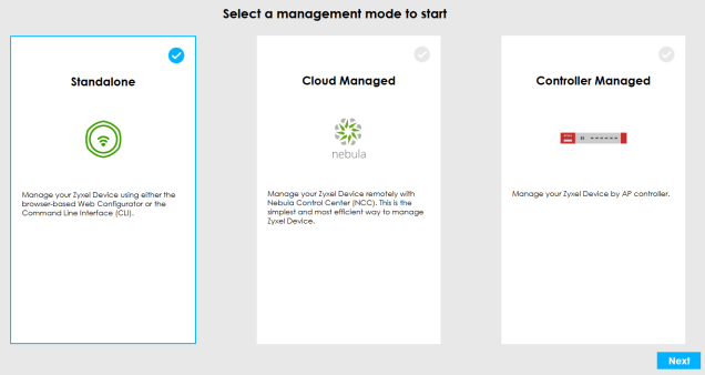 Standalone if you use the Web Configurator to manage your Zyxel Device. Select