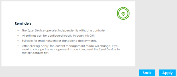 Controller Managed if you use an APC to manage your Zyxel Device. Refer to
