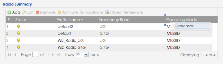 AP Profile | Radio | Create and manage WiFi radio settings files that can be associated with different APs. |