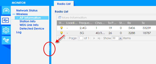AP Information | Radio List | Display information about the radios of the connected APs. |